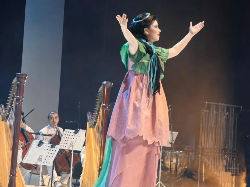 歌剧《茶》以千年“茶”魂入戏,讲述了一个充满爱恨交锋的故事。剧中巧妙地将东方禅意与西洋歌剧创作形式交相融合,如同一壶茶汤,煮沸了人生舞台。谭盾在创作中大胆突破歌剧传统形式,他以“五感沉浸”为理念,致力于打造一场全方位的艺术盛宴。在舞台上,演员们手持陶制茶器,通过敲击、摩擦、注水等动作模拟自然之声,形成了一种独特的“有机音乐”。这种音乐与交响乐的融合,让观众仿佛置身于大自然之中,感受着茶与自然的和谐共鸣。邓颖在其中的精彩表现得到了观众和同行的认可。