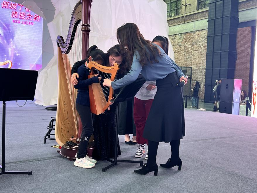 值得一提的是,音乐会中特别设置“竖琴零距离”互动环节,数十名来自社区的小学生在高馥佳师生指导下,首次触碰竖琴琴弦,合作完成《世界赠予我的》《数鸭子》等曲目。稚嫩的琴声与专业演奏和谐共鸣,孩子们眼中闪烁的惊喜与成就感,成为美育浸润童心的生动注脚。