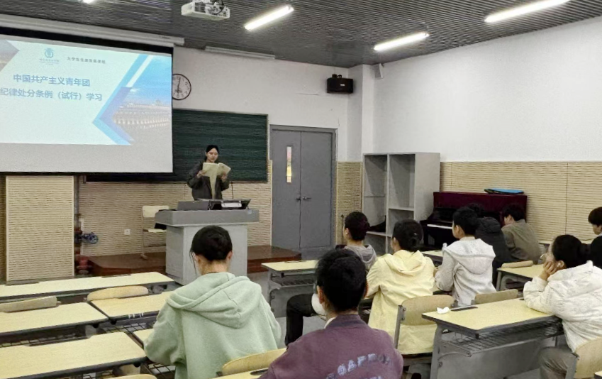 管弦系开展学习《中国共产主义青年团纪律处分条例(试行)》主题团日活动。管弦系团委书记田怡文为团员们上了一堂生动的纪律团课,团课围绕《条例》的制定背景、主要内容和重要意义展开,通过详细解读条例条款,结合实际案例分析,让团员们深刻认识到遵守团纪的重要性。团员们表示,将以此次学习为契机,自觉遵守团章团纪,努力提高自身素质,在学习和生活中展现新时代共青团员的风采。
