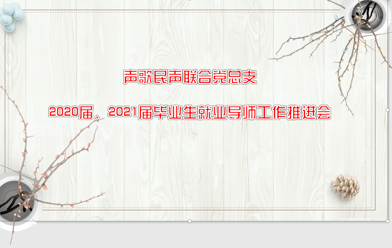 通过此次就业导师工作推进会,声歌民声联合党总支的全体就业导师进一步了解了毕业生就业工作形势和相关政策,厘清了工作职责和工作任务,明确了未来的工作目标和努力方向,为做好2020届毕业生就业后续跟踪服务工作,提升2021届毕业生就业率和就业质量夯实了基础。