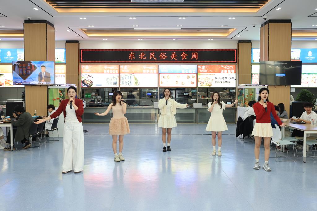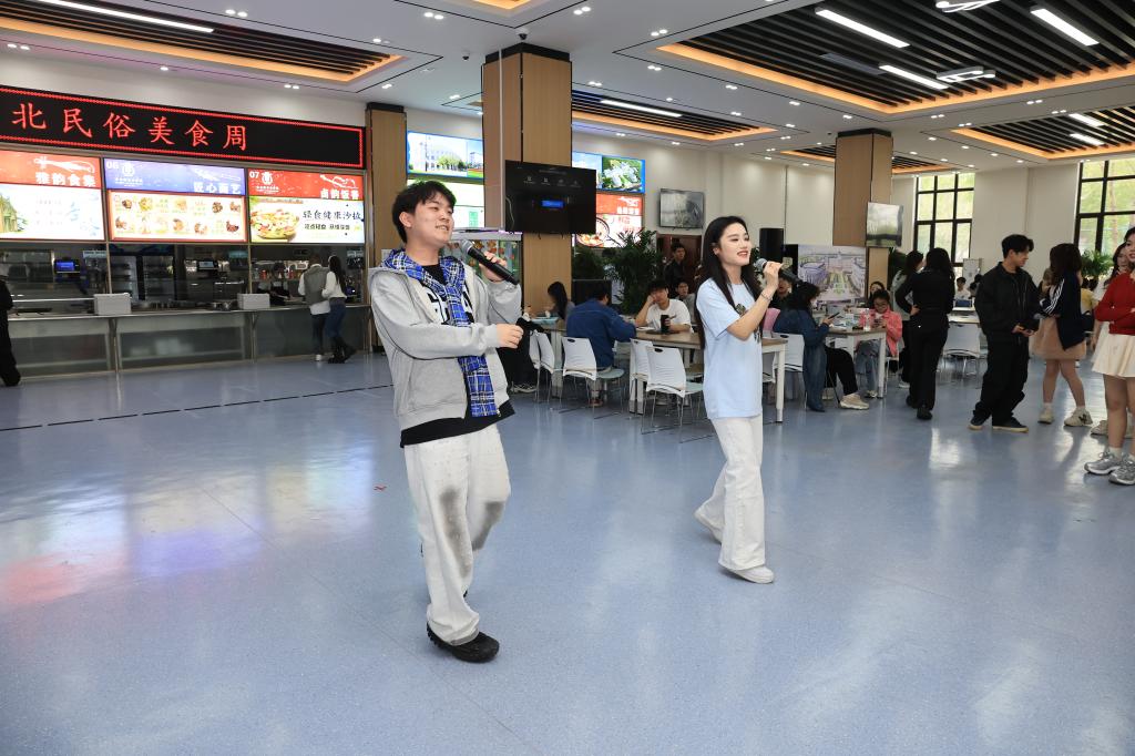 5月13日,由校团委、后勤资产管理处、民族声乐系共同举办的“歌声传情,美食润心”东北民俗美食周活动在学生餐厅开幕,极具特色的东北民歌展演与地道东北风味美食相结合,为师生们带来一场沉浸式的民俗文化体验。