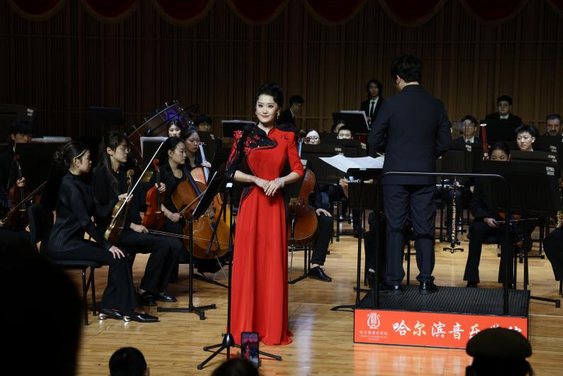 音乐会上,各位专业教师依次登台献艺。民乐系教师张馨元带来三弦与乐队《三弦与乐队协奏曲》第一乐章,独特的乐器音色与乐队配合默契,展现出非凡的艺术魅力;声乐歌剧系教师邢晶竹的女中音独唱《我心花怒放》,用醇厚的嗓音和精湛的演唱技巧,将作品情感完美诠释。