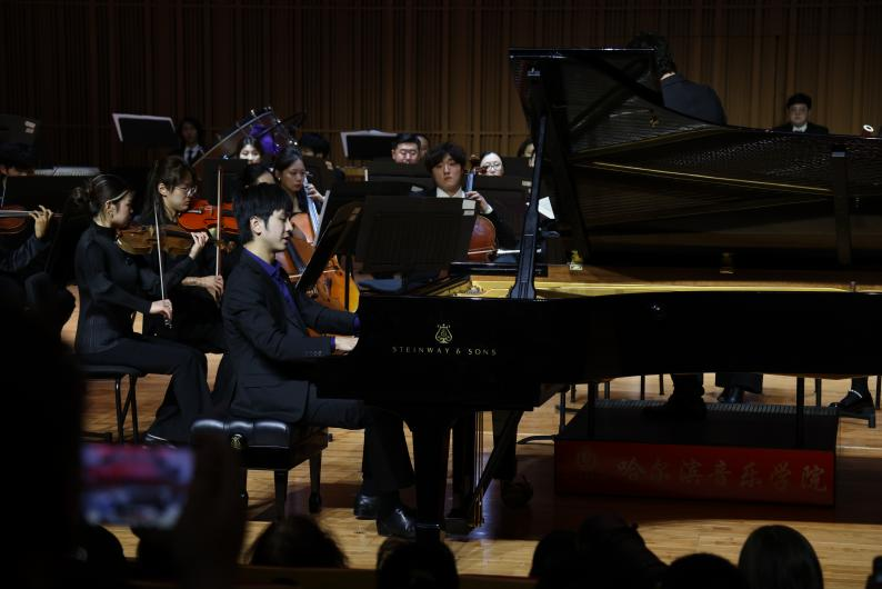 由刘碧玥演奏的古筝与乐队《山河颂》、男高音王继明演唱的《扎西德勒》等节目,更是通过独特的音乐语言,为观众带来一场视听盛宴。最后,钢琴系教师徐起演奏的钢琴与乐队《第三钢琴协奏曲》第三乐章,将音乐会推向高潮,其高超的演奏技艺赢得现场观众经久不息的掌声。