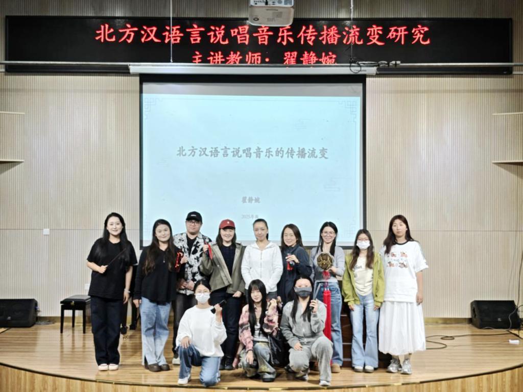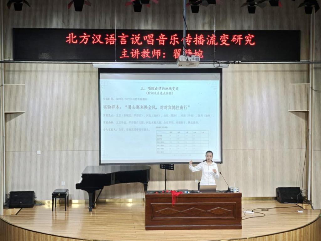 讲座上,翟静婉详细阐述了说唱音乐与戏曲音乐的区别,分别从民间界定和理论概念两个方面进行解读,让听众对说唱音乐有了更为清晰的认知基础,为后续深入探讨北方汉语言说唱音乐奠定了理论基调。