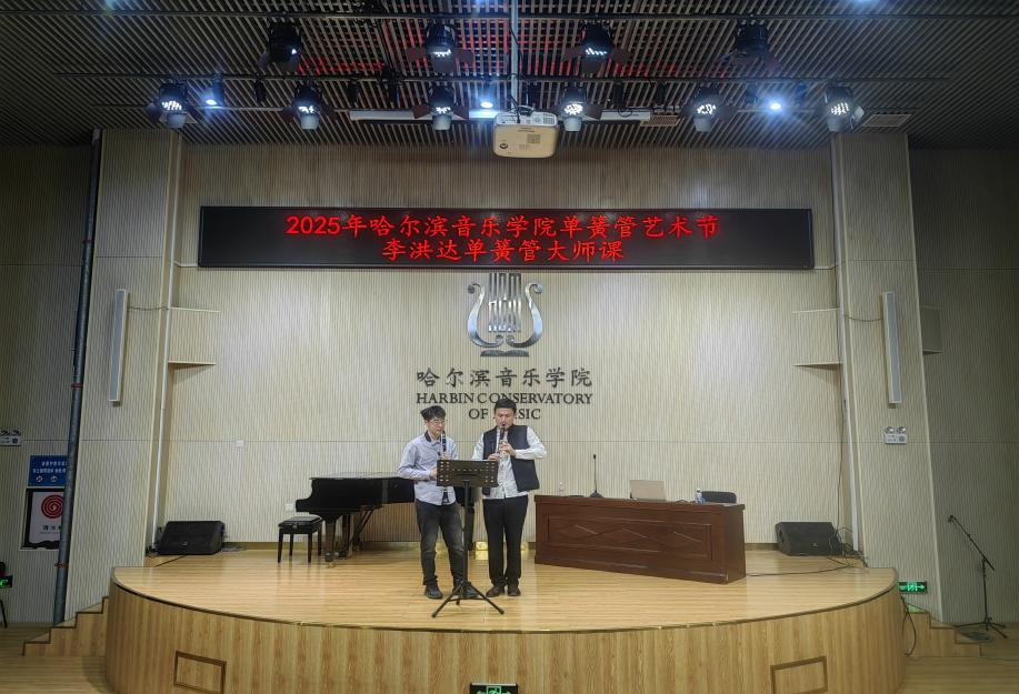 音乐节上,黑龙江艺术职业学院音乐系副主任、黑龙江省青年教学名师李洪达副教授讲授单簧管大师课。