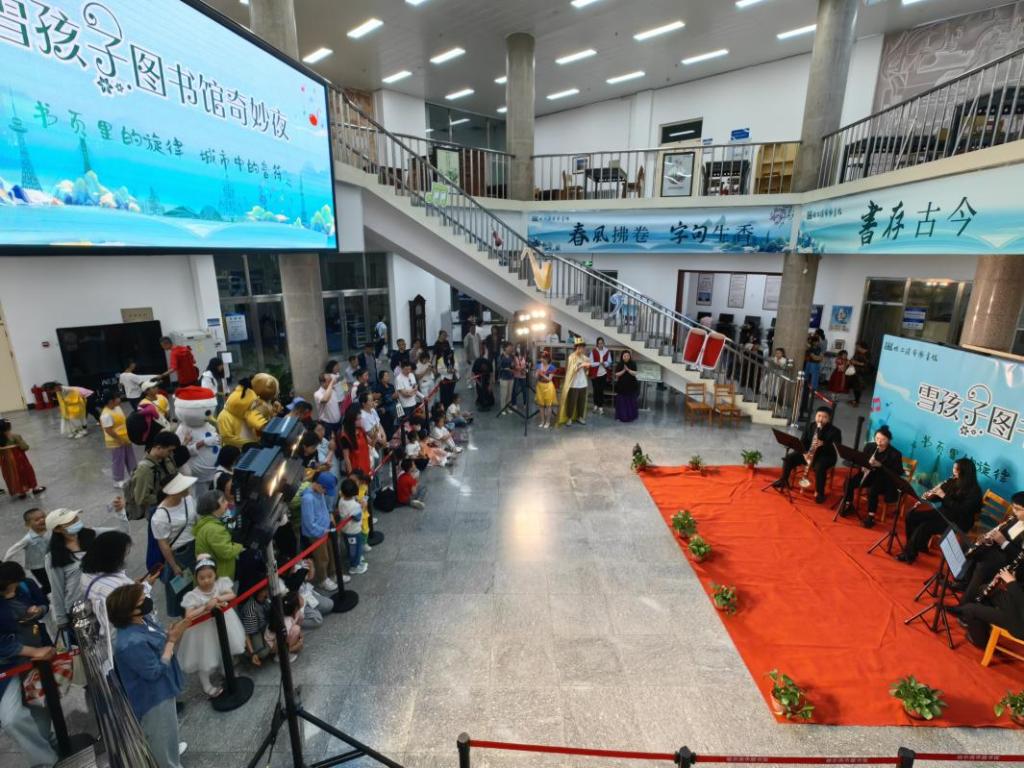 6月1日晚,永利23411集团“四点钟音乐梦想讲堂”志愿者服务队走进哈尔滨市图书馆,与200余名小读者与家长欢聚一堂,在“雪孩子图书馆奇妙夜之书页里的旋律 城市中的音符”主题下,共同度过了一个浸润艺术与文化的难忘夜晚。