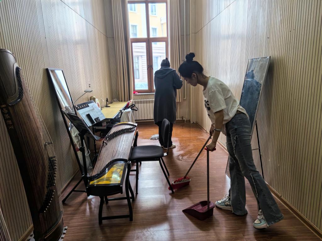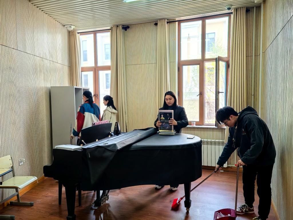 5月7日,为进一步引导学生在劳动中锤炼品格、提升能力,辅导员与组织员带领学生打扫琴房。劳动过程中,同学们分工协作,氛围有序,经过共同努力,琴房变得窗明几净。民乐系2023级本科生张云赫表示:此次劳动活动,不仅改善了琴房的卫生环境,也让我们在劳动中体会到付出的快乐与收获的满足,增强了大家的责任感和集体荣誉感。