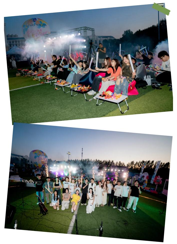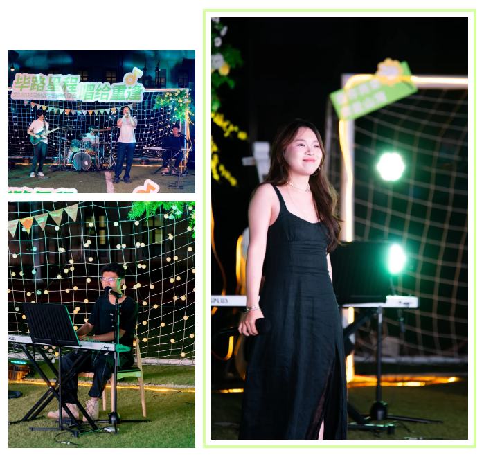 闪闪发光的青春、热情洋溢的演绎、温暖治愈的情谊,共同织就了这个难忘的夏夜。师生们席地而坐,以草地为席,以星空为顶,沉醉于由同窗带来的精彩乐章。
