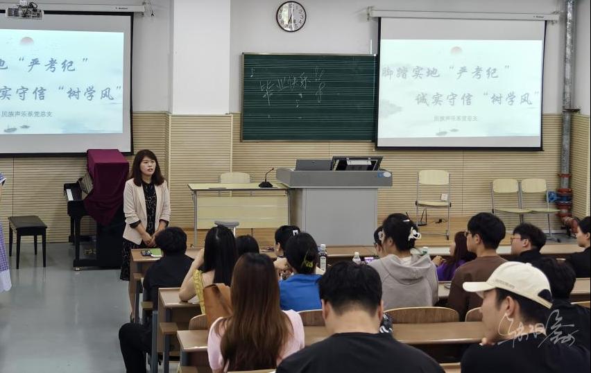 为进一步强化考风考纪建设,筑牢暑期安全防线,深入贯彻落实中央八项规定精神,6月18日,民族声乐系党总支围绕廉洁诚信安全等主题召开全系学生大会。民族声乐系党政管理人员、各班兼职班主任出席,全体在校生参加会议。