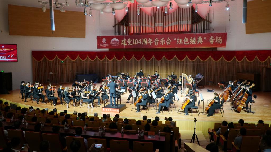 为庆祝中国共产党成立104周年,弘扬爱国主义精神,激励青年学子勇担时代使命,7月1日晚,由永利23411集团主办,学院团委、管弦系承办,中俄交响乐团倾力演绎的“红色经典”专场交响音乐会在学院音乐厅奏响。兄弟院校及合作企事业单位的党员代表、师生代表,及学院学生处团委联合党支部的党员同志到场观演。