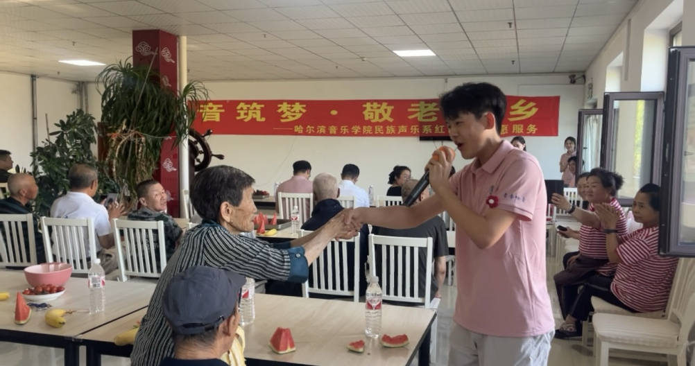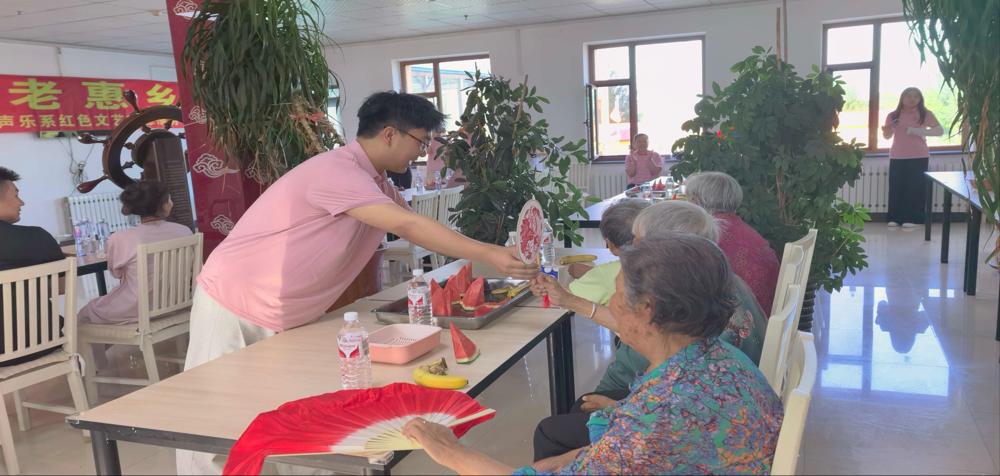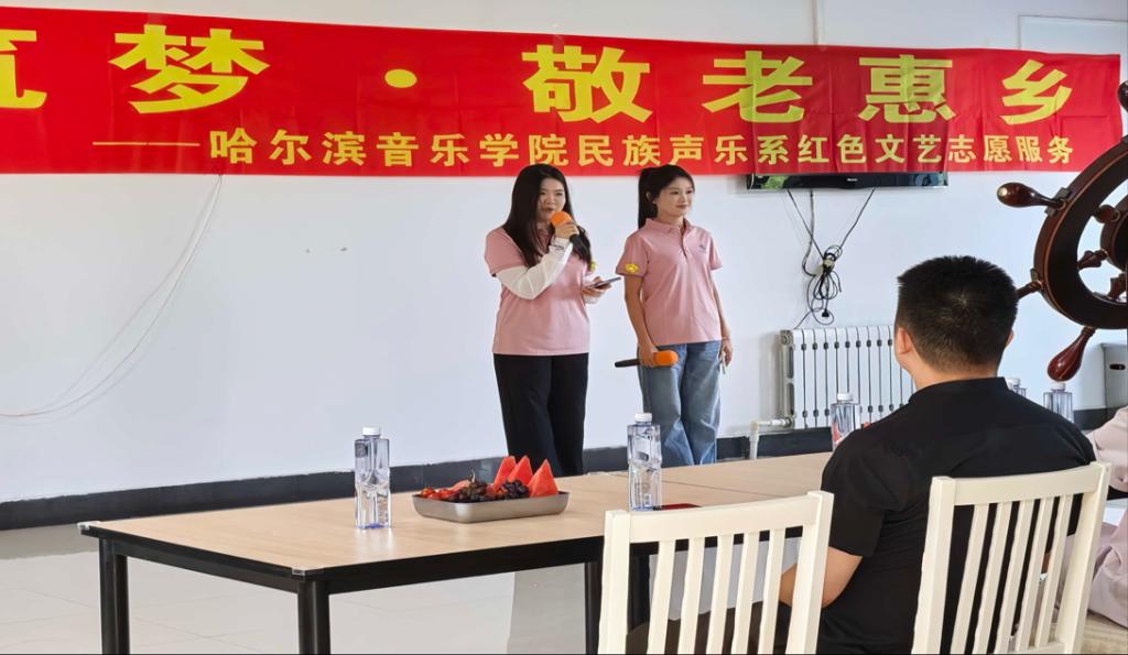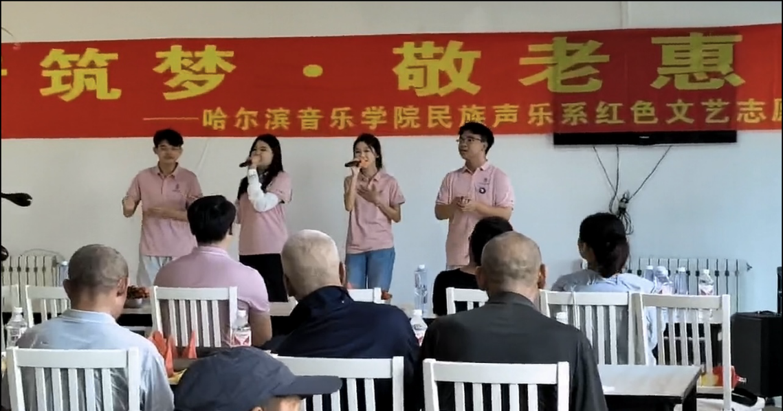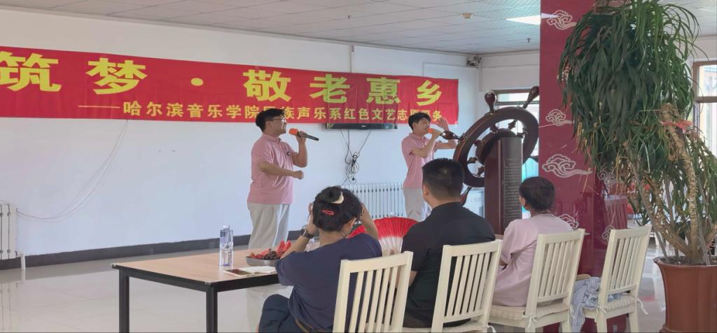 为弘扬中华民族尊老敬老的传统美德,展现新时代青年担当,7月7日,民族声乐系“乐聚乡音”志愿服务团来到齐齐哈尔市家好月圆敬老院,以文艺志愿服务践行“人民至上”理念,开展暑期“三下乡”社会实践活动。