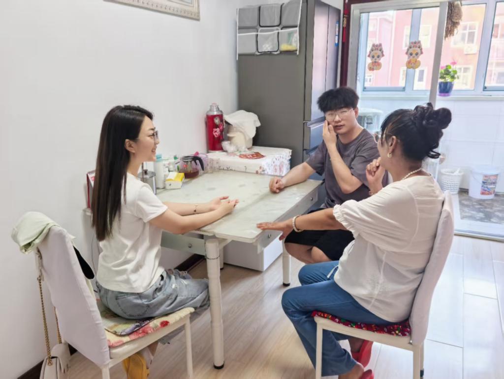 在家访郑博什的过程中,辅导员陈怡霖和关天放分别从学生角度与学生家长促膝长谈,了解家长对于孩子在家庭教育及未来规划上的想法,并详细介绍了郑博什在校的学业表现、社团活动参与情况及综合素质发展现状,肯定了他在专业学习和志愿服务中的积极表现。并结合钢琴表演就业趋势,鼓励学生要在明确发展目标的同时积极参与社会实践活动,积累实践经验,引导学生要针对薄弱科目,设定合理学习计划。