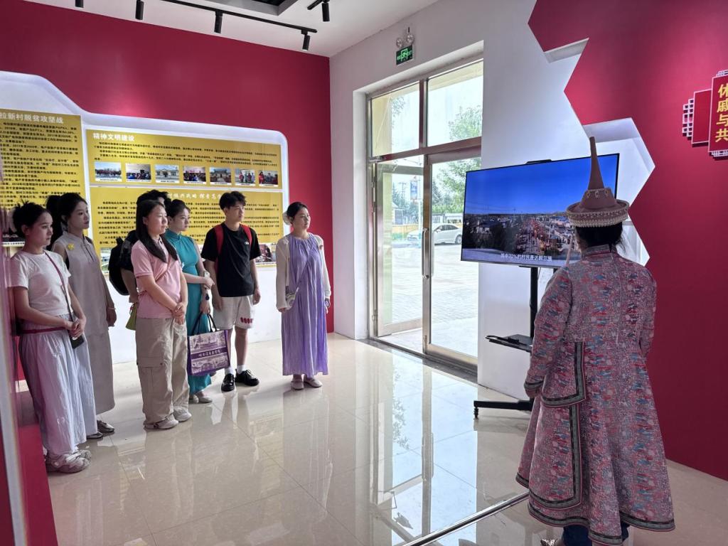 在齐齐哈尔市梅里斯达斡尔族区雅尔塞镇党委副书记、镇长乔瑞和哈拉新村党支部书记多雪英的引领下,团员们参观了村史馆。多雪英动情讲述达斡尔族先辈抗击洪水重建家园的奋斗史,展示民族服饰、传统器物,并现场教唱达斡尔族民歌。悠扬的古老旋律让学子们深切感受到“库木勒节”等民俗背后深厚的家国情怀,体悟到“让老百姓腰包鼓起来”的基层担当与民族文化传承的融合之道。