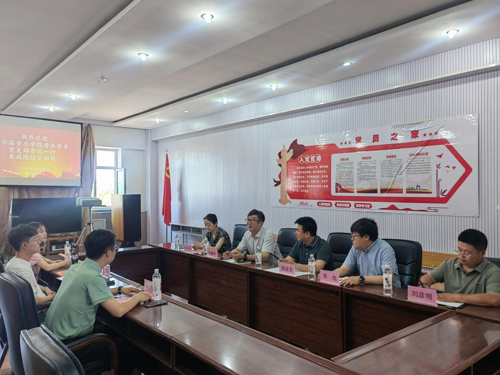为深入贯彻落实党中央、国务院关于高校毕业生就业工作的决策部署,深化校际合作,推动人才培养与就业需求精准对接,7月9日上午,音乐学系教师党支部书记陈龙、辅导员白宇辉带队赴齐齐哈尔大学音乐与舞蹈学院开展访企拓岗促就业专项行动。齐齐哈尔大学音乐与舞蹈学院党委书记陈曦泽,院长、党委副书记殷进良,副院长郭旭、李美虹,学院党政办主任刘彦明等参与座谈交流。