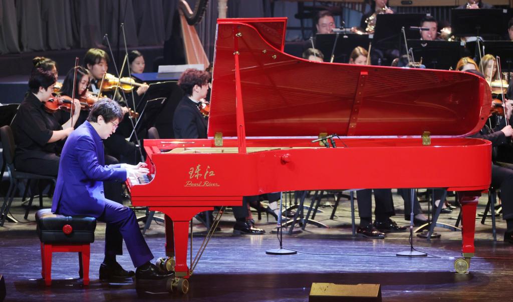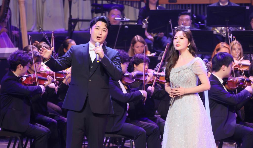 民族声乐系教师付晓婷、声乐歌剧系教师毛一伟领唱歌曲《归来》,生动地诠释了中华民族血脉相连、落叶归根的家国情怀;钢琴协奏曲《黄河》第四乐章《保卫黄河》由学院副院长元杰担任钢琴独奏,以振奋的旋律再现慷慨激昂的奋战场景,致敬中华民族不屈的抗战精神。