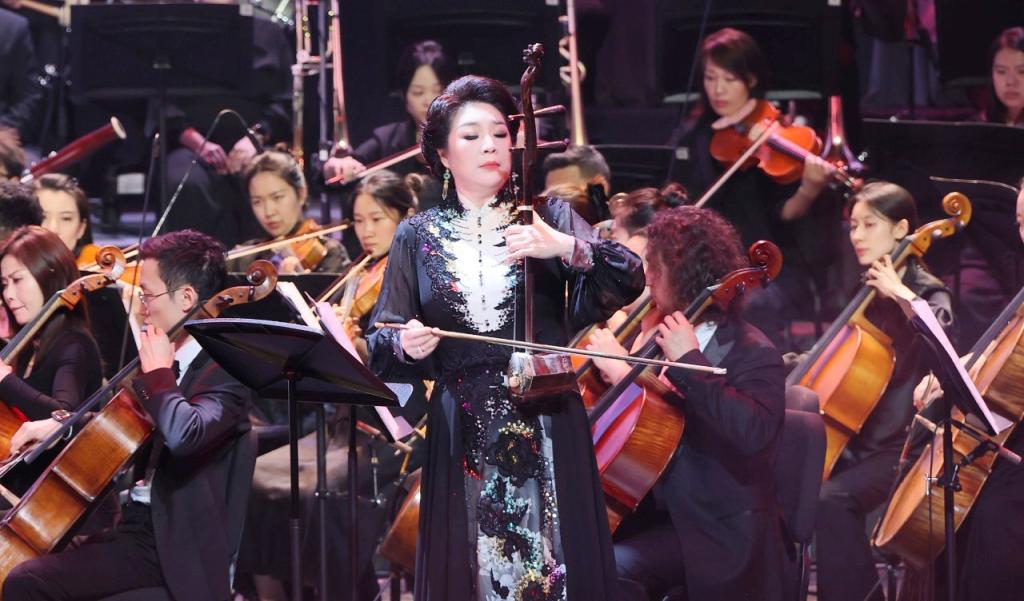 在“山河铭记”篇章,学院院长宋飞以二胡与乐队合作演奏的《嫂子颂》,通过音乐艺术形式,深情颂扬英雄事迹,回顾历史沧桑,深切纪念中国人民抗日战争暨世界反法西斯战争胜利80周年。