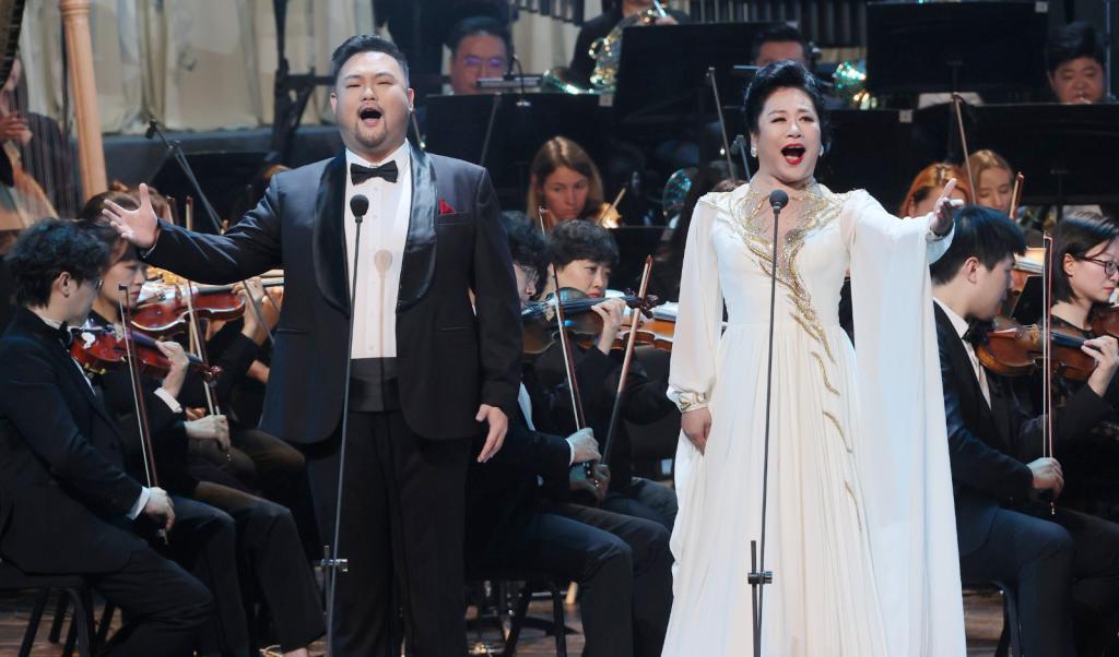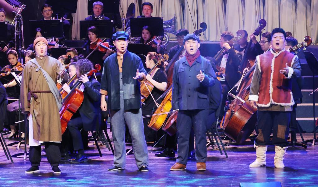 在“继往开来”篇章中,民族声乐系教师周虹池演唱《满怀深情望北京》,歌声醇厚而富有张力,仿佛将一片赤子之心融于旋律之中,唤起观众对祖国的无限眷恋;随后,民族声乐系教师王庆辉以一曲《我爱你,塞北的雪》打动全场,其嗓音清亮婉转,如雪花般轻柔洒落,演绎出北国风光的纯净与壮美;声乐歌剧系教师王牌领唱的《大美黑龙江》则节奏明快、情绪昂扬,用清澈而真挚的声线勾勒出黑土地上的辽阔山河与风土人情;声乐歌剧系教师鄂振明领唱的《不忘初心》深情而坚定,歌声中传递出厚重的情感和坚守信念的力量,令人回味无穷。