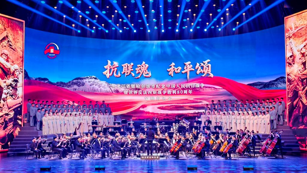为纪念中国人民抗日战争暨世界反法西斯战争胜利80周年,由中共黑龙江省委宣传部、哈尔滨市委宣传部主办,黑龙江省文联与黑龙江广播电视台共同承办的“抗联魂·和平颂”——黑龙江省暨哈尔滨市纪念中国人民抗日战争暨世界反法西斯战争胜利80周年交响音乐会,于9月2日在哈尔滨大剧院隆重举行。学院选派优秀师生精心编创,在音乐会中献上精彩的演出。