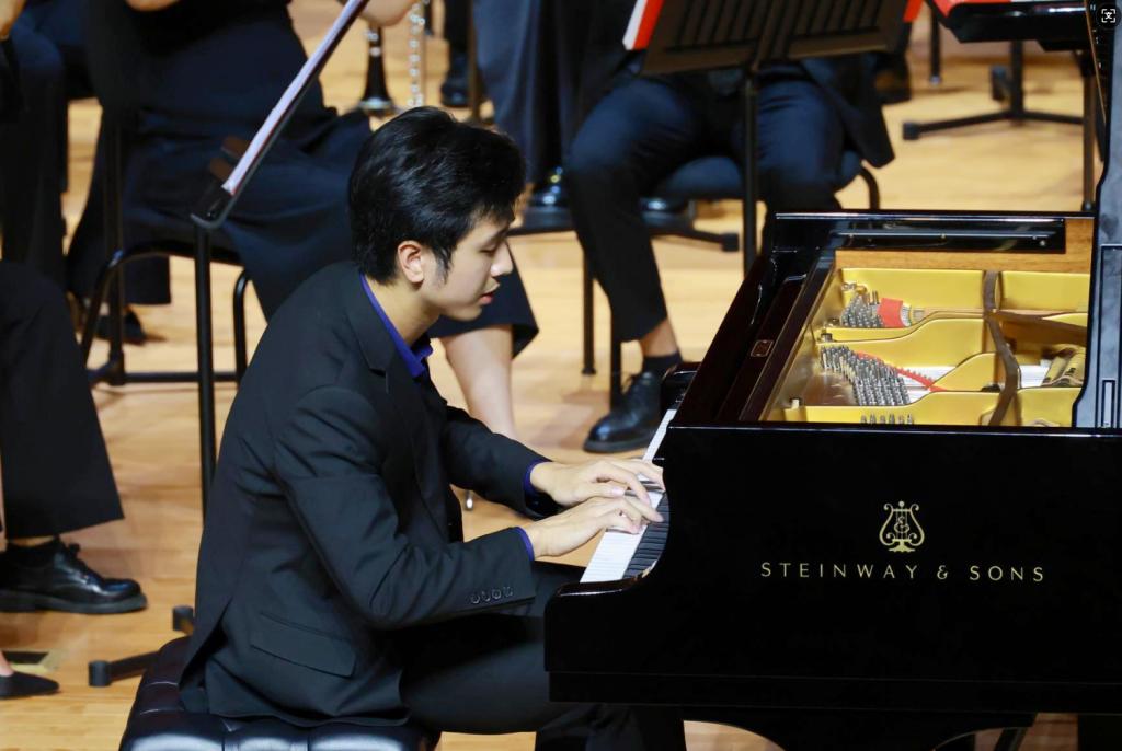 钢琴系教师徐起与乐队,在学院中俄交响乐团的协奏下,完成了《第三钢琴协奏曲(第一乐章)》的演绎,用富有张力的和弦推进表现手法诠释出《第三钢琴协奏曲》的戏剧性与抒情魅力。