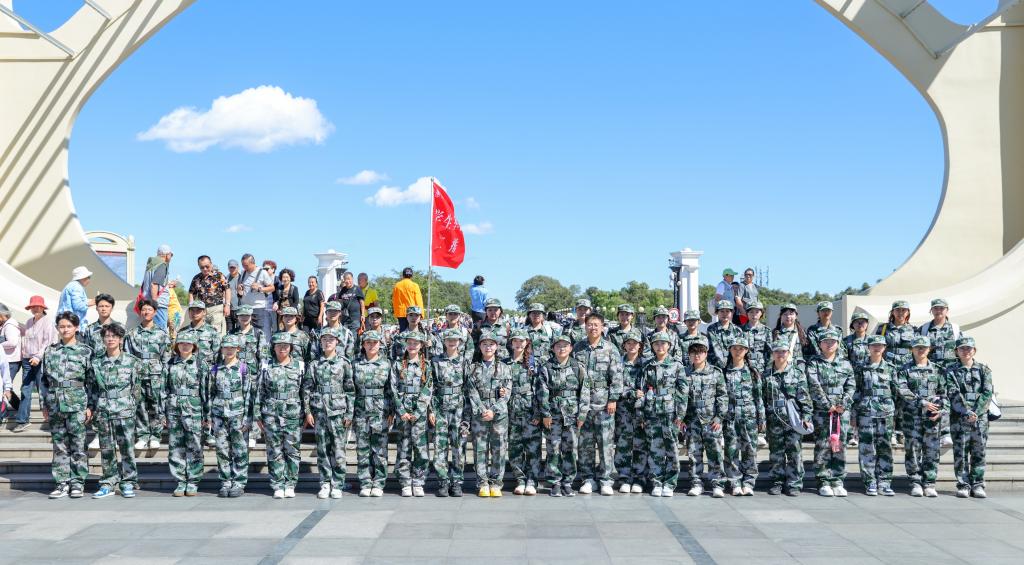 近四小时的徒步拉练,全体参训学生无一掉队,顺利抵达终点。大家在太阳岛雕塑前合影留念,记录下这段充满意义的光荣时刻。