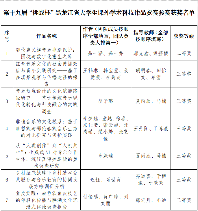 近日,由团省委、省教育厅等相关部门联合举办的第十九届工商银行“挑战杯”黑龙江省大学生课外学术科技作品竞赛结果揭晓。学院师生在此次竞赛中荣获二等奖1项、三等奖6项。