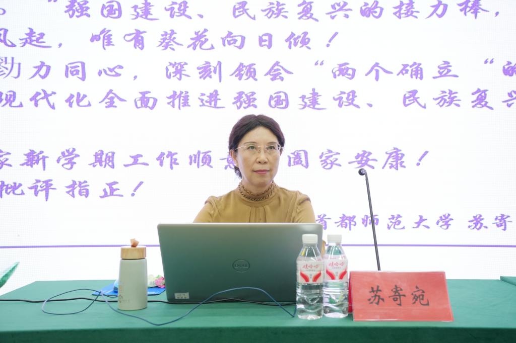 本次师德大讲堂邀请教育部“全国暨高校师德师风建设专家委员会”委员,首都师范大学德育研究院师德中心主任苏寄宛教授,做了“以教育家精神铸魂强师,谱写教育强国建设华章”专题讲座。