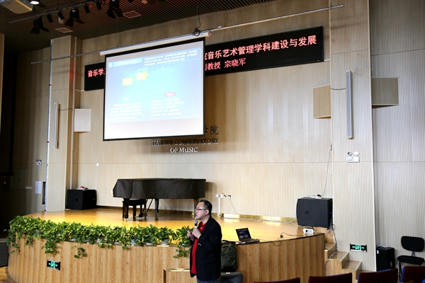 讲座中,宗老师首先从艺术管理专业的兴起、课程设置、人才培养等介绍了艺术管理专业在国内外的发展现状。随后,他结合自己的学习和工作经历,解读了艺术管理的核心价值理念,即,艺术管理是“服务”于艺术的工作,不是“管理”艺术的工作;艺术管理者不是艺术表演的传播者,而是赋予艺术“内涵”的思想者;艺术管理者应当成为当今社会中艺术传播方向的“引导者”。他讲到,艺术管理具有艺术社会价值、艺术自身价值、艺术市场价值;社会价值的体现就是被社会认同的艺术与艺术对社会的贡献、对社会起到的作用及影响;自身价值即在艺术中能够体现出的价值是由不同的特点、特性而逐步形成的;市场价值即在商业消费市场中,艺术消费者通过自身对艺术产品消费后所产生的价值。最后宗老师与大家分享了中央音乐学院艺术管理专业的创建过程和教学成果。