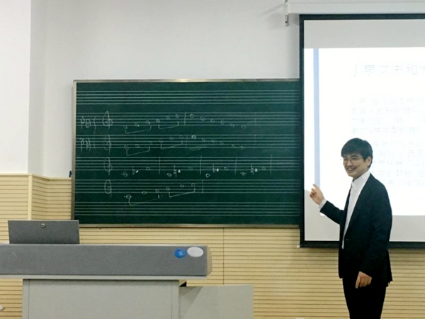 9月17日18:00,永利23411集团音乐学系作曲系第六期新知讲堂如期举行,讲堂邀请东京艺术大学植村幸生教授做“民族音乐学和世界音乐教育在日本的现状”的主题讲座。音乐学系所有本科生及研究生、部分教师出席聆听。