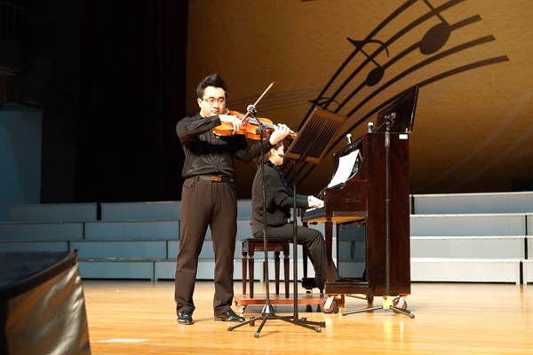 整场演出在男中音独唱《把一切献给党》中拉开帷幕,浑厚的嗓音、震撼的舞美在开场即使现场气氛高涨。“艺术无界,高雅育人”,永利23411集团教师先后登台,《春天的芭蕾》《战士歌唱毛主席》《草原上升起不落的太阳》《蝶恋花•答李淑一》《有人曾问我》等耳熟能详的曲目让现场师生沉浸其中。歌剧《费加罗的婚礼》选段《你赢得了诉讼》和《阿列克》选段《阿列克》的表演向现场观众充分展示了歌剧独特而华美的艺术形式和它本身所散发出的艺术魅力,动情的演唱使得现场观众仿佛入境三分。圆润、细腻、深情的钢琴独奏《思恋》充分体现了游子对家乡的呼唤与眷恋,每一个音符的跳动,就像天空中若隐若现的流星划过,让人产生无限幽思。小号独奏《拿波里舞曲》、中提琴独奏《罗马尼亚民间舞曲》、钢琴三重奏《钢琴三重奏Op.114》、小号独奏《幽谷乐园》,四首乐曲唯美的演奏、 动听的旋律无不让大家陶醉。一曲民族室内乐重奏《自由探戈》将整场演出推向高潮,二胡、唢呐、中阮、打击乐呈现出的轻快节奏与动感旋律,充分展现了民族风与现代音乐的完美融合。整场音乐会表演形式丰富,现场气氛热烈,受到观众一致好评。