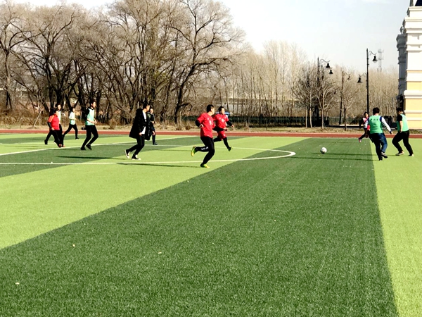 体育活动月首场比赛在教工足球队和声歌系民歌系学生足球队间进行。赛前双方球员情绪高涨,摩拳擦掌,准备一展身手。裁判员口令响起,比赛正式开始。在昂扬的斗志与娴熟的技术下,我院教工队拿下全场比赛的第一分。随后在球员的默契配合下,学生代表队也取得了一分。上半场结束时,两队以1:1战成平手。学院舞蹈社团热情洋溢的啦啦操后,下半场比赛开始,教工队运用高超的技术连进2球将比赛再次推向高潮。最终,教工队以4:1大比分赢得了本次足球赛的胜利。