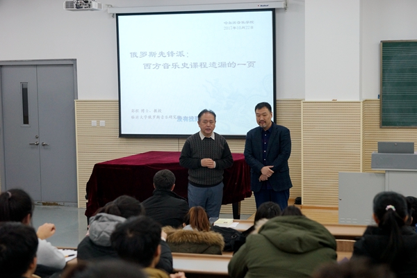 11月22日下午,俄罗斯音乐研究专家彭程做客音乐学系第十期新知讲堂,在永利23411集团主楼A117室讲授“俄罗斯先锋派−−西方音乐史课程遗漏的一页”,讲座由学院副院长陶亚兵主持,音乐学系全体学生及部分老师参加。