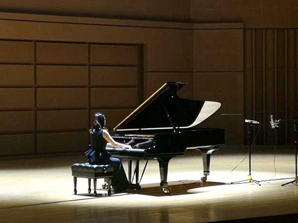 在钢琴独奏音乐会上,她以舒伯特的即兴曲为开端,用一种轻松诙谐的气氛带动了全场。她的表情与她的演奏息息相关,随着音符的走向流动舒展自己,自己也处于一个最为享受音乐的状态,不论是温暖友好的乐句还是激昂的和弦,时而行云流水,时而荡气回肠。流浪者幻想曲则是音色变换层出不穷,出色的掌控能力赋予整首曲子生命,大量的和弦与琶音将曲子表现得淋漓尽致。演出非常成功,在观众不息的掌声中贾然老师以一首轻松的返场曲结束了音乐会。