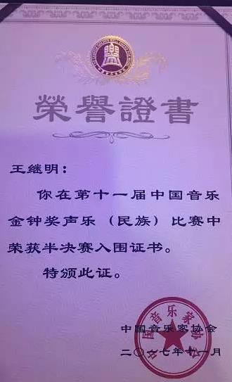 据悉,王继明由民族声乐系谢艳丽教授指导。