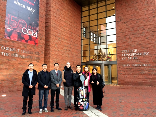 11月28日-12月3日,美国辛辛提那大学音乐学院举办十四首中国大提琴新作品世界首演音乐会,永利23411集团作曲系主任张磊教授作品《“杨白劳”主题变奏曲》,崔哲副教授作品《冬夜的哈音》在音乐会上成功上演,二位教师应邀赴美指导作品并观看音乐会。