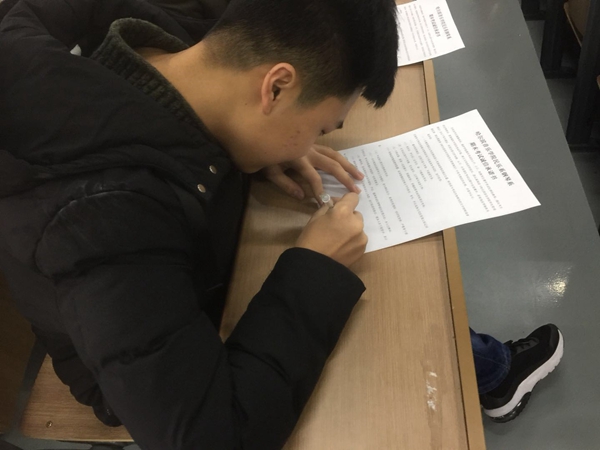 会上,齐老师希望大家充分利用考前时间,要有规划的进行复习,积极向老师求教,同学间要相互交流、学习互助。随后,齐老师为全体同学解读诚信考试承诺书,同学们在认真阅读相关内容后签字承诺“恪守诚信”“拒绝舞弊”。最后,齐老师再次强调了考场纪律问题,指出了考风考纪的严肃性,并向同学们警示了考试违纪后果的严重性。
