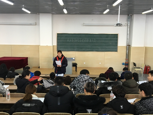 为了保证本学期期末考试各项工作的顺利开展,严肃考风考纪,督促同学们认真备考,民乐系钢琴系于12月28日中午12:30,在主楼A117教室召开了考前教育动员大会,并签署诚信考试承诺书,全体民乐系钢琴系本科生参加。会议由辅导员齐道喜老师主持。