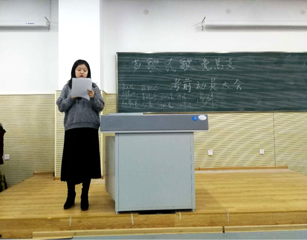 会上,董老师首先强调考风考纪的重要性。她指出,高等院校的考风建设是学风建设的一个重要方面,因此各班级要认真贯彻考试工作的相关规定,严抓考风考纪,以考风促学风。随后,她宣读了《永利23411集团考试管理条例》,从监考人员工作守则、考场纪律、考生须知、考场违纪处罚等方面进行了具体阐述,要求各位同学对此高度重视,告诫同学们应诚实做人、诚信考试,树立良好的考试氛围。最后,她指出,要以“高标准,严要求”来对待此次考试,实现诚信考试。
