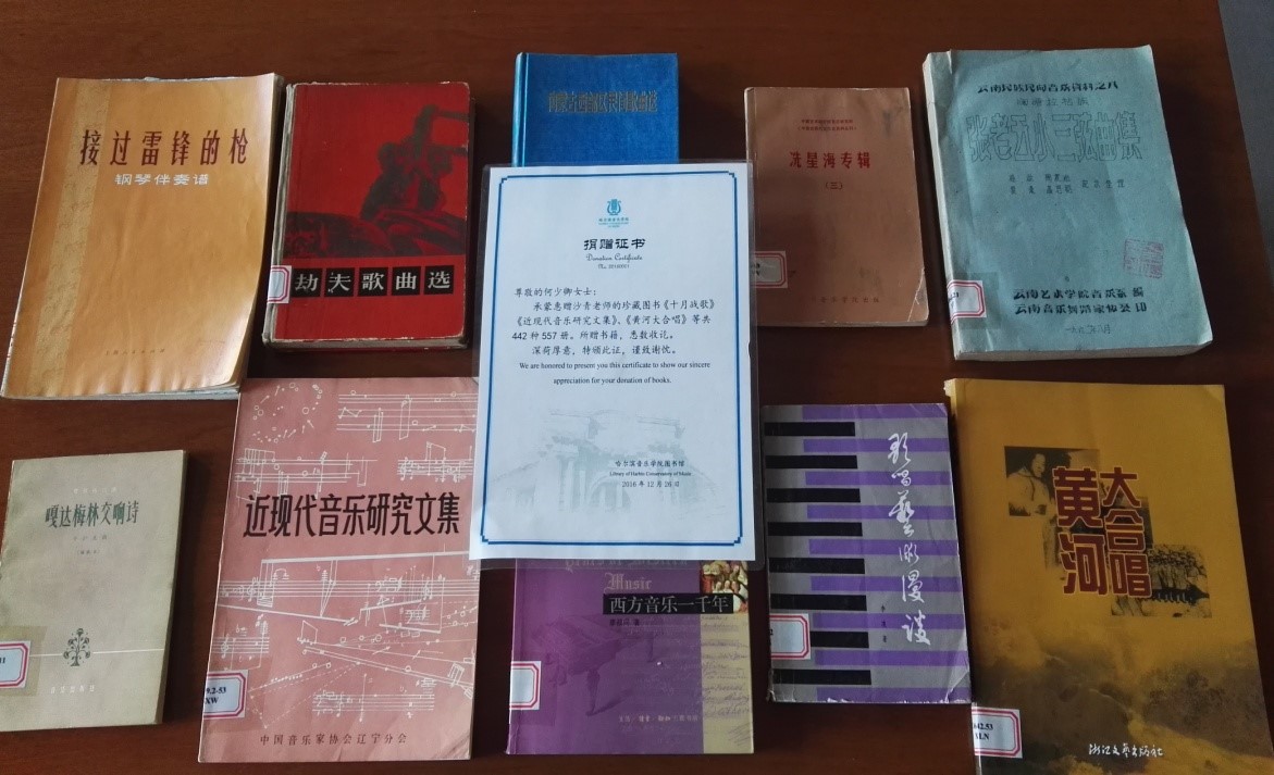 近日,已故音乐社会活动家、作曲家、中国音乐金钟奖终身成就奖获得者沙青先生的夫人何少卿女士将其生前收藏的442种557册图书捐赠给学院。学院向何少卿女士颁发捐赠证书,感谢期慷慨捐赠。目前,图书馆已完成所有赠书著录、加工工作,并陈列于二楼阅览室赠书专架供学院师生阅览研习。