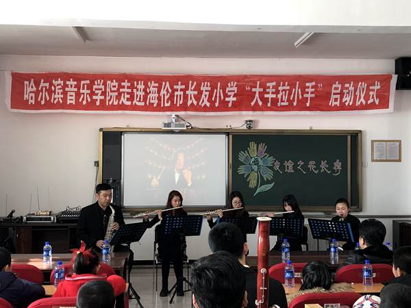 启动仪式上,海伦市教育局副局长王迎春代表海伦教育局对永利23411集团师生到来表示热烈欢迎,对学院师生为长发小学给予的教育帮扶表示衷心感谢,对即将开展的“互联网+音乐”公益微课堂、教师培训、校园合唱团及小乐队组建等系列帮扶活动计划给予高度认可,并表示海伦教育局将全力支持、配合永利23411集团的各项活动,期待长发小学的音乐课堂更加丰富多彩。接着,杨琳擘老师详细介绍了对接活动内容、实施方案要求,并表示学院团委将实实在在为海伦教育脱贫攻坚、为留守儿童服好务,保质保量完成各项活动内容,确保活动的长效性、系统性。随后,长发小学校长薛成林、学院志愿者代表韩卓诚依次发言。与会领导、老师向长发小学留守儿童代表赠送书包、音乐专业类书籍、文具、运动水杯、体育用品等慰问品。