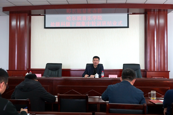 学员代表发言结束后,党委工作部临时负责人徐长勇讲话,首先对本次轮训工作进行总结。他指出,本次轮训特点鲜明,一是领导重视,全院统筹,学院按照省委组织部和省委高校工委文件要求制定详细轮训工作方案,将全体党政管理干部全部纳入学员范畴,学院主要领导亲自参与轮训辅导;二是内容丰富,形式多样,本次轮训工作共组织包括两位校外专家在内的5次专家报告,从不同维度深入浅出地对十九大精神、习近平新时代中国特色社会主义思想进行解读,同时结合小组讨论、观影活动、学员自学、撰写心得体会等多种形式丰富了轮训内涵;三是态度认真,学习深入,学风严谨,在新学期学院各项工作紧锣密鼓深入推进、各部门人手紧缺、轮训工作占用休息日和大量工作时间的不利环境下,学员仍严格自我要求,坚持学习,确保学习质量;四是上下联动,组织有序,本次轮训工作以四个机关党支部为基础成立四个学习小组,在一周的学习时间里,从统筹部门到各小组成员都兢兢业业,按照方案要求将各项学习活动开展地井然有序。随后,他对下一阶段学习工作提出要求,要求各小组组长及联络员按照轮训工作方案将后续工作扎实完成,要求学员学习笔记及心得感想撰写工整、写实、不得抄袭,要求全体学员认清形势,强化学风,注重理论学习和本职工作紧密结合。