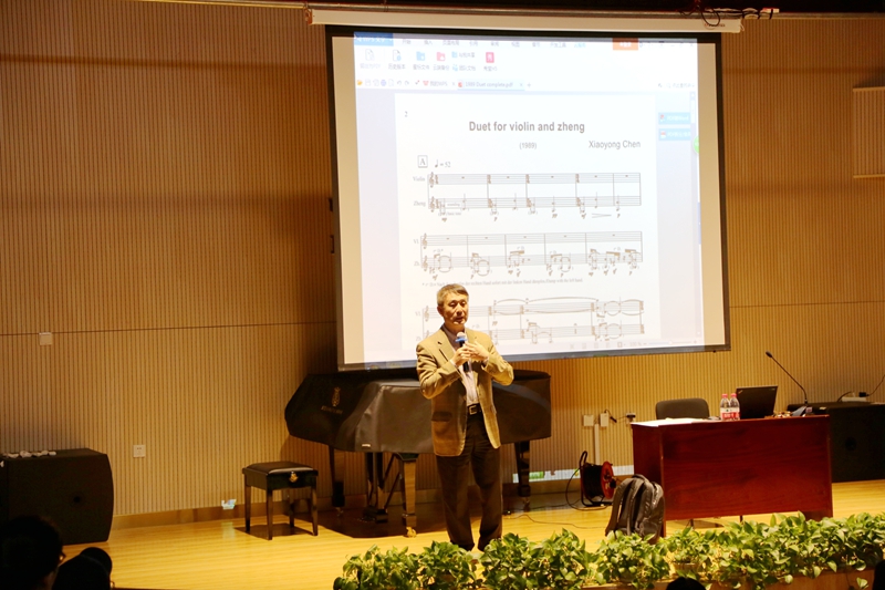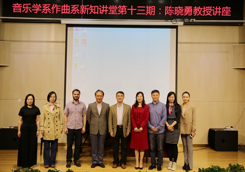 5月10日15:00, 德籍华人作曲家陈晓勇教授做客作曲系音乐学系新知讲堂,在永利23411集团学术报告厅(主楼A220室)讲授“音乐与人−−从我对音乐信息传递与转换方式特征的研究谈我对声音与情感关系的思考”,讲座由作曲系负责人张磊教授主持,作曲系全体师生和音乐学系部分师生参加。