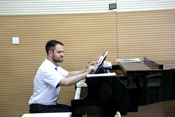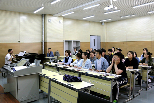 5月16日13:00, 作曲系俄籍教师安东·根纳季耶维奇·奥斯塔片科做客音乐学系作曲系第十四期新知讲堂,在主楼A207室举办和声大师班。此次大师班的主题为“技术与表现−−和声写作训练的途径与方法”,针对学生作业中出现的问题给予现场指导演示。大师班由作曲系负责人张磊教授主持,作曲系全体师生及音乐学系部分学生参加。