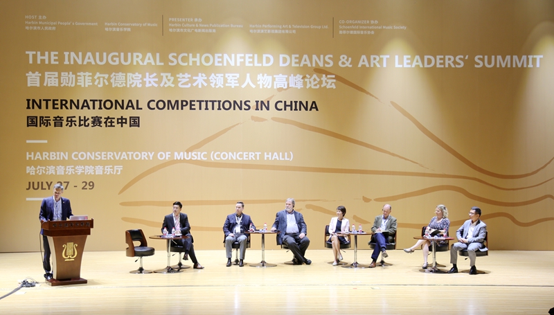 高峰论坛期间,莱蒙德·特伦克勒、洪钟琳和伯纳德·兰斯基、何为、奥利弗·康迪四位音乐专家分别就“精英培训−−弦乐教育的未来”“音乐学院和社区−