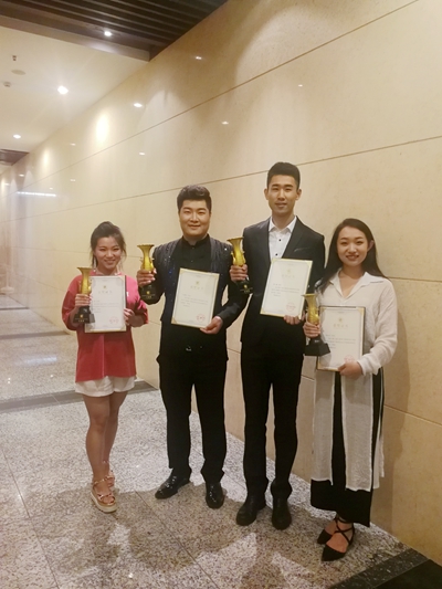 经过激烈的比赛,我院声歌民歌代表队选手不负众望,在比赛中取得优异成绩:民族声乐音乐学院研究生组王继明同学荣获一等奖,本科生组张影、李步凡同学荣获三等奖,李博、夏雨欣同学荣获优秀奖;美声音乐学院研究生组李彩伊同学荣获优秀奖,本科组陈健同学荣获三等奖,文颂同学荣获优秀奖;我院荣获优秀组织奖;民族声乐系谢艳丽教授、栾岚副教授,声乐歌剧系李雷教授荣获优秀指导教师奖;董春林老师、李木子老师荣获优秀钢琴伴奏奖。