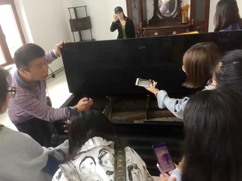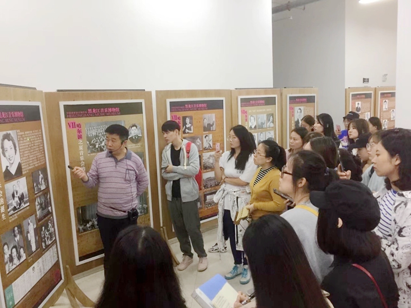 在展板展示区,顾馆长详细介绍了古代音乐在黑龙江流域的起源、西方音乐文化传入黑龙江的过程、抗战时期黑龙江音乐文化的发展、“延安鲁艺”时期对黑龙江音乐文化的影响、新中国成立后龙江特色音乐文化的形成。随后,他讲述了从黑土地走出的音乐名家、耕耘在黑土地的音乐家的故事,讲述了中国三大音乐节之一的“哈尔滨之夏”音乐会的形成、发展、辉煌,讲述了哈尔滨城市音乐发展对近现代中国音乐发展的影响。在乐件陈列区,同学们在数千件珍贵乐件中穿行,通过充满传奇色彩的钢琴、具有时代特征的梳妆台、印满历史痕迹泛黄的乐谱等,了解到乐件的历史,惊叹于制作的工艺,感受着音乐的魅力,体会着“音乐无国界”的真谛。