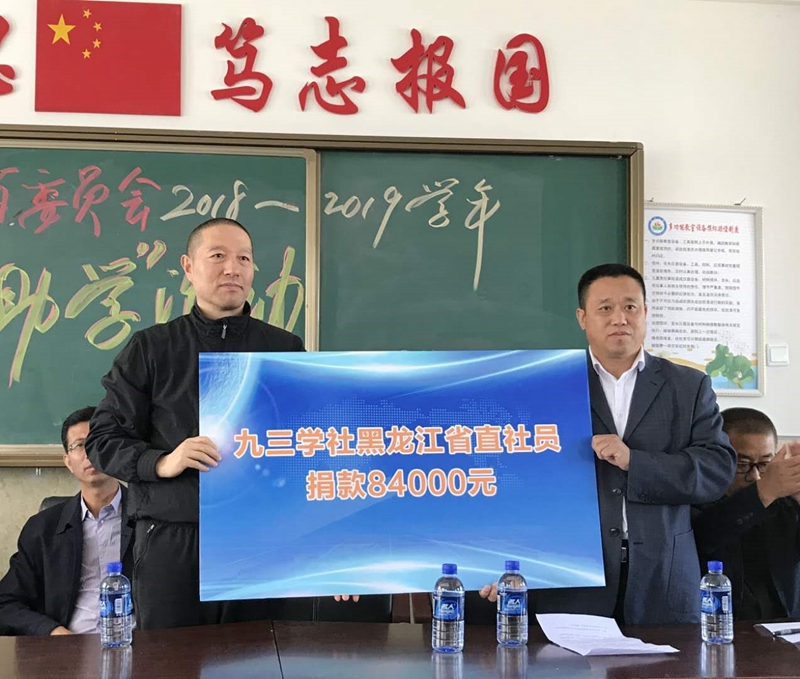 据悉,“九莲助学”活动是九三学社黑龙江省委组织的一项教育扶贫的长期工作,于2017年9月启动,与望奎县莲花镇中心学校结成帮扶对子,发动各支社社员积极参加筹集资金,开展形式多样的一对一跟踪帮扶活动。