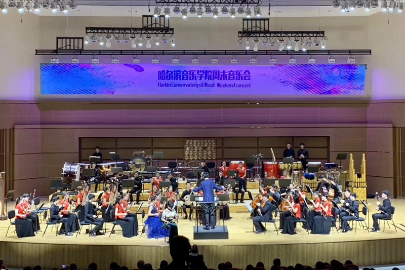 音乐会后半场高潮迭起,二胡专业教师王丹婷独奏东北民歌《月牙五更》,慢而不忧,细而不燥的旋律,仿佛将思绪拉回到了滋养我们的黑土地上,感受到了农民翻身做主的喜悦心情。唢呐专业教师尚帅独奏《渔樵农耕》,展现了一幅男耕女织、渔民撒网、安居乐业,天与地、人与自然和谐的景象。由民乐系教师索帅执棒学院青年民族乐团,倾情演绎了《独克宗》《北方音诗》两首曲目。值得一提的是,《北方音诗》为乐曲首演,清新明朗的音乐旋律刻画了东北的历史积淀、东北人的鲜明性格,大开大合,粗中有细,以音诗的方式为在场的听众呈现了一个当代的、年轻的东北人文,展现了当代东北强大的生命力和创造力。整场演出体现了高水平的艺术水准,赢得了观众的热烈掌声。