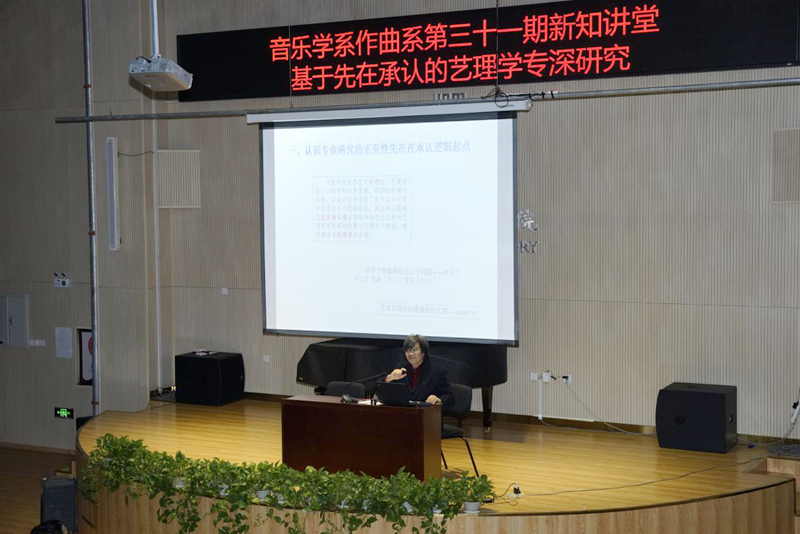11月28日下午,北京师范大学艺术与传媒学院美术与设计系教授梁玖做客音乐学作曲系第三十一期新知讲堂,在主楼A220室讲授《基于先在承认的艺理学专深研究》主题讲座,音乐学系全体本科生、硕士研究生、博士研究生与部分教师聆听了讲座。