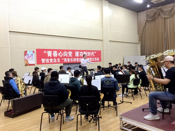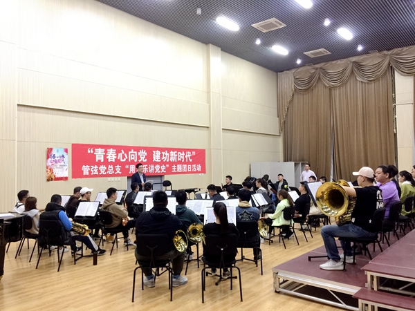 据悉,管弦系学生管乐团一直在积极探索“用音乐讲党史”这一新时代大学生思想政治教育的方式和平台,旨在通过丰富的红色经典音乐作品及原创音乐,将音乐艺术与大学生思想政治教育有机融合,诠释党的性质和宗旨,再现党的奋斗历程,赞颂党的辉煌业绩,让广大青年学生在音乐和歌声中感受党史、了解党史、理解党史,用艺术的方式激励党员不忘初心、牢记使命。