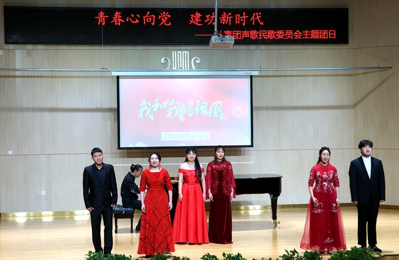 4月25日,伴随着嘹亮的团歌,声歌民歌联合团委在主楼A219第一演奏厅召开“青春心向党 建功新时代”特别主题团日。学院团委副书记杨琳擘、声歌民歌联合党总支副书记曲娜出席本次活动,声乐歌剧系、民族声乐系全体团员参加。